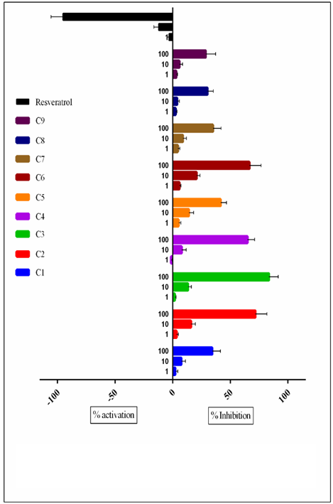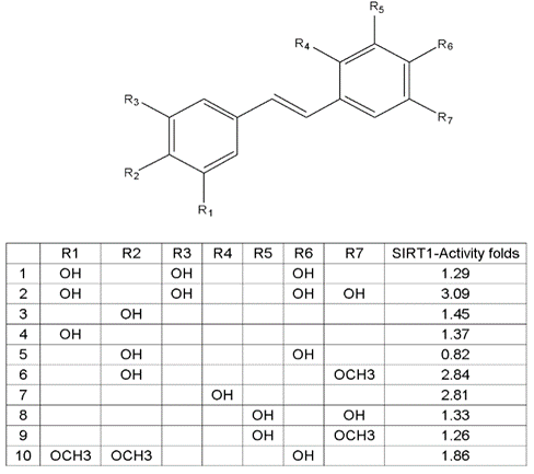 Fig. 3: SIRT-1 activity of a group of stilbenes. The results are expressed as activity fold [4]