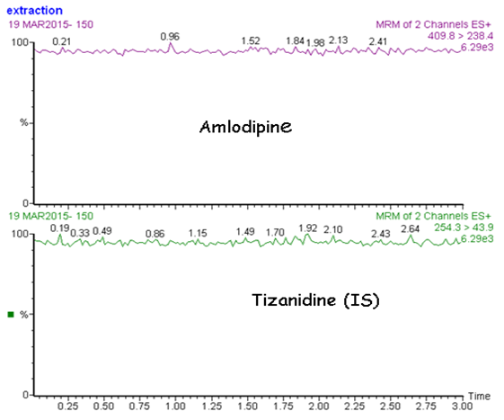 Table 1: Extraction recovery of amlodipine and tizanidine (IS)