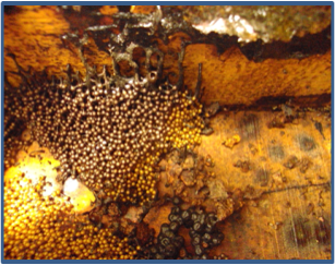 Products of Stingless bees are highly medicinal because they collect nectar and pollen selectively from medicinally important small herbal plants and flowers such as Coco palm, banana, guava, papaya, mango tamarind, thumba-poo, thengen-boo, touch-me-not plant, jack fruit tree, tulsi, teak etc., They are the most important pollinators of treasured herbal plants. Since stingless bees do not have sting and lacks defense organs, it protects the medicinally important rich food resources by covering the larger holes of the hive with wax like substance and seals the minute pores of the hive using a special type of resinous substance which it creates on its own by mixing its own body secretion from the salivary glands with the resins collected from the leaves, trees, plants, buds etc. This natural resinous substance produced by bee secretion and substances collected from plant parts is called propolis [2-4].