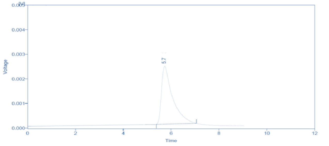 As M.E.-MA was found to be significantly active against cancer cell lines, residual solvent analysis of M.E.- MA was carried out by Headspace GC method. Reference solvent methanol (1000ppm) showed peak at 5.7 min (Area 100.85 mV.s) as depicted in fig. 2A. Chromatogram of M.E.-MA did not show any peak at 5.7 min suggesting absence of methanol in M.E.-MA (fig. 2B). Hence crude extract M.E.-MA does not contain traces of the solvent, thus eliminating any possibility of interference by the solvent in the activity of ME.MA.