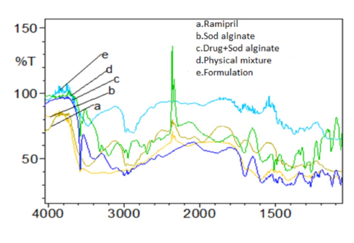 Ramipril was generously gifted by M/s Ranbaxy Labs Ltd., Gurgaon, India. Various polymers like sodium alginate, HPMC (K4M and K100M) were provided by Colorcon, Goa, India; while Himedia, Mumbai, India, provided CaCl2, carbopol 974P, Na CMC and chitosan. All other chemicals and reagents like potassium dihydrogen phosphate and sodium hydroxide used were of analytical reagent (AR) grade. Deionized water (distilled) was used throughout the experimental procedure.