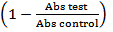 Percentage inhibition = 1- (Abs test/Abs control) × 100