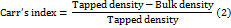 Carr’s index is a dimensionless quantity, which proved to be useful to the same degree as the angle of repose values for predicting the flow behaviour. The compressibility of the spheroids was determined by Carr’s compressibility index using the Eq. (2) given below [18].