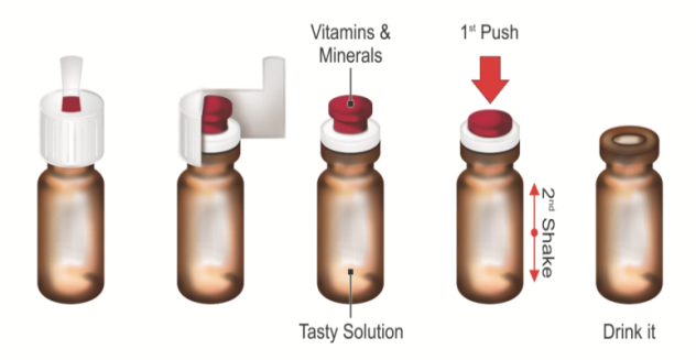 Our research presented the product in a dosage form that is widely used in Italy; it combines advantages of liquid dosages with those of solid dosages. it is suitable for patients who have trouble swallowing; it also has fast absorption, accurate dosing and good stability, it is single-dose product, so no need to measure the dose. Use the dosage form as shown in figure1, remove plastic cap, then press the plunger into the vial shaking well then drink the whole solution. Our research presented the product as sugar free, Under the authority of the Nutrition Labeling and Education Act of 1990, FDA issued regulations for the nutrient content claim “sugar free” 58 Federal Register (FR) 2302 at 2415. “Sugar free” is defined in Title 21 of the Code of Federal Regulations 101.60(c) (21 CFR 101.60 (c)) as a claim that may be used on a food that contains less than 0.5 g of sugar [7].