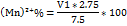 Dissolve an accurately weighed quantity of Manganse sulfate 1 g, in 200 ml of water. Add 0.5 gr potassium cynide and 20 ml of ammonia-ammonium chloride buffer TS and 0.1 ml of erichrome black TS, and titrate with 0.05 M edetate disodium VS until the solution is deep blue in color. Each 1 ml of 0.05 M edetate disodium is equivalent to 2.75 mg of Manganse. Quantity of Manganse % have calculated as the following equation