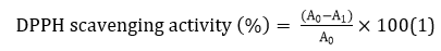 Where Ao is the absorbance of control at 30 minutes, A1 is the absorbance of the sample extract at 30 minutes. All results presented are means (±SD) and were analyzed in three replications.
