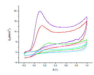 Fig. 1: Cyclic voltammogram referring to different ascorbic acid concentrations