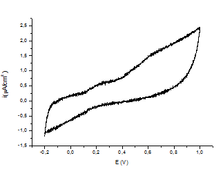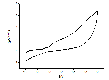 Fig. 3: Cyclic voltammogram of Origanumvulgare ethanolic extract in pH 7, 0.2M phosphate buffer solution at scan rate 100 mV/s.