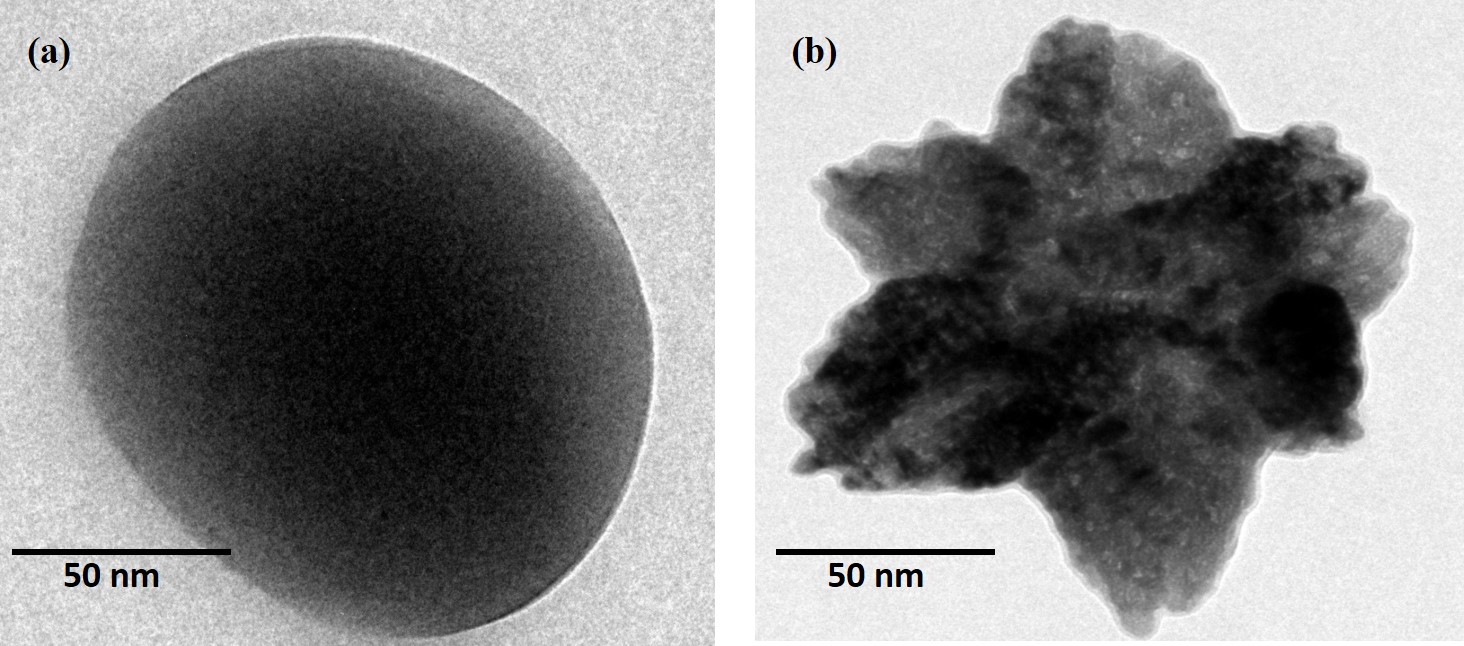 Fig. 2: Transmission electron micrograph (TEM) of formulated SLNs showing spherical morphology (a) and D-SLNs representing deformed morphology (b)