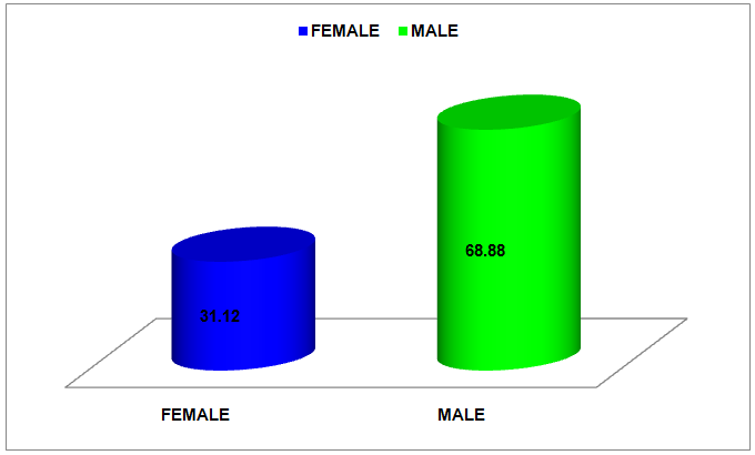 Forty-five patients who fulfilled the inclusion criterion were recruited in the study. Twenty-five patients were non-diabetic whereas 20 patients were diabetic. The mean (SD) age of the study population was 46.8 (14.2) years. The study participants were constituted of 68.88% male and 31.12% female (fig. 1). The distribution of study population based on their age group is depicted in table 1.