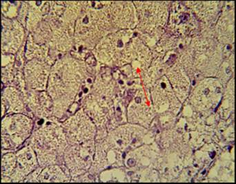 In addition, this study was found to be a match with another study revealed hypertrophic hepatocytes, hardly apparent sinusoids with fatty infiltration [18].