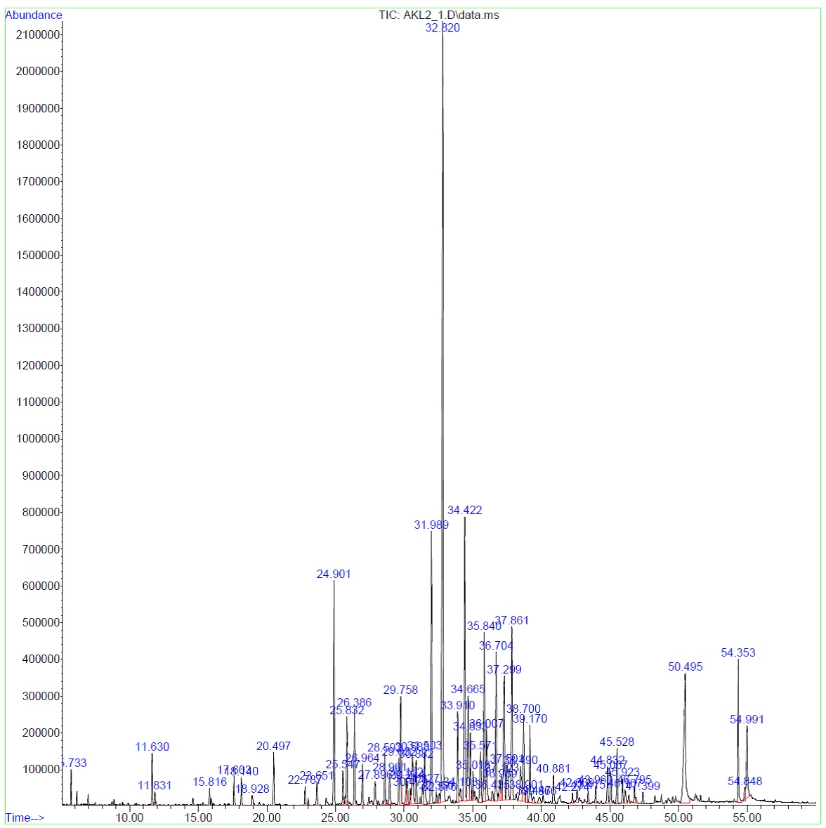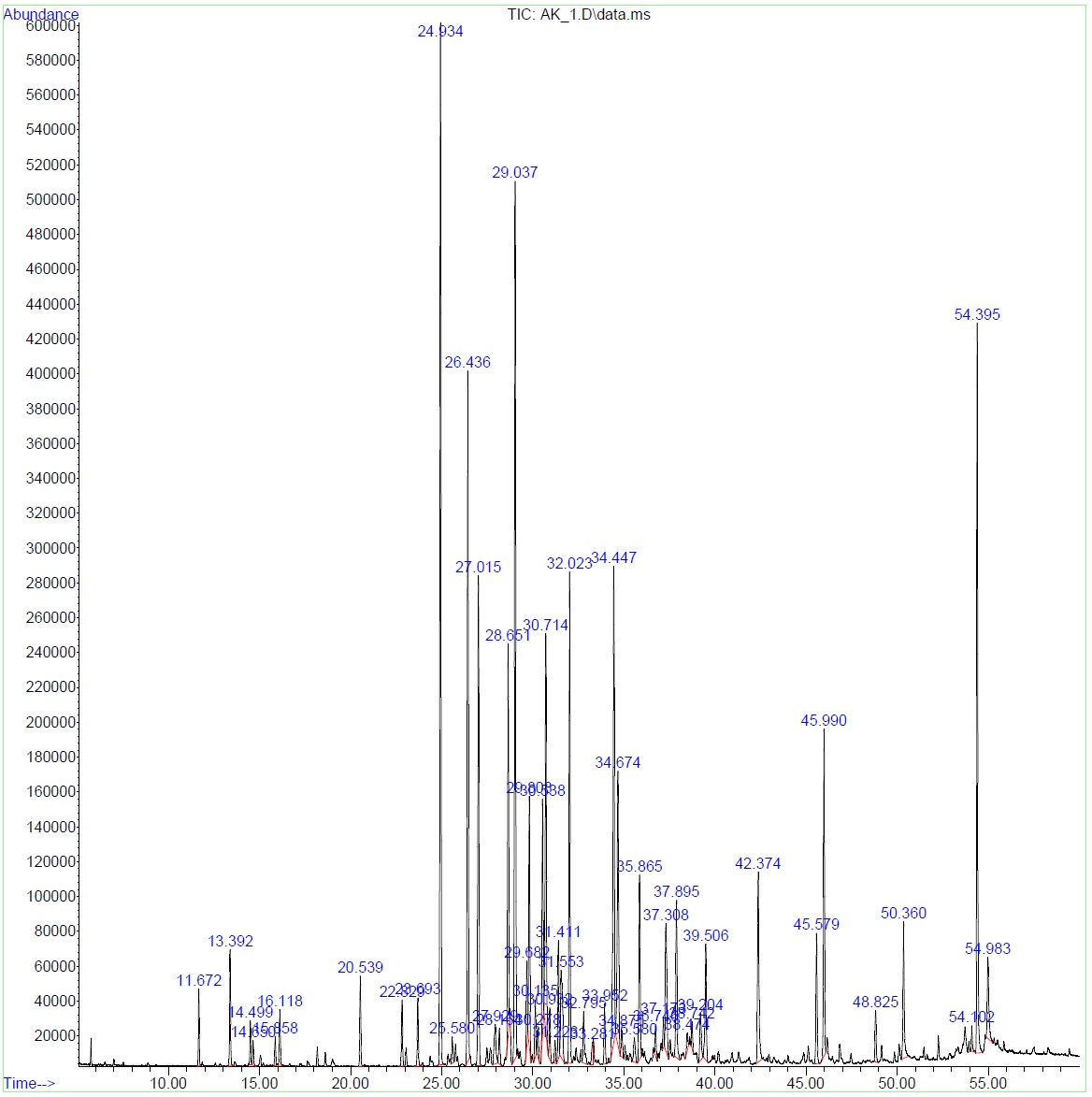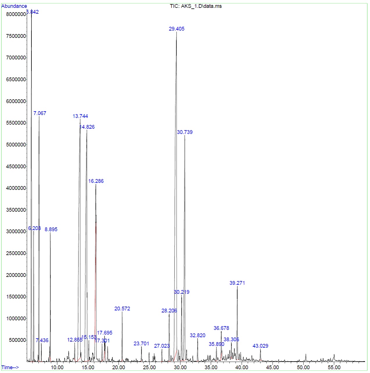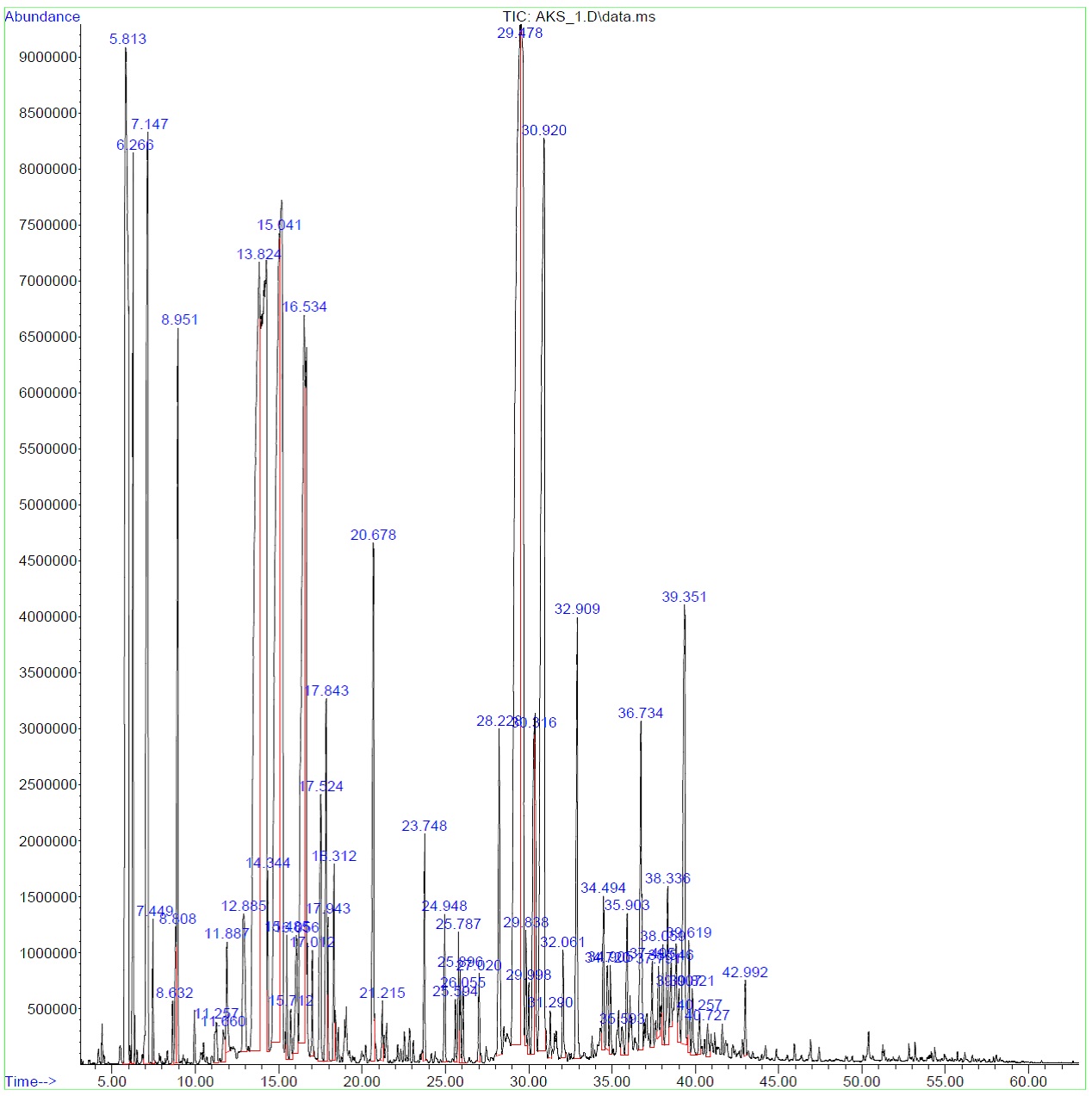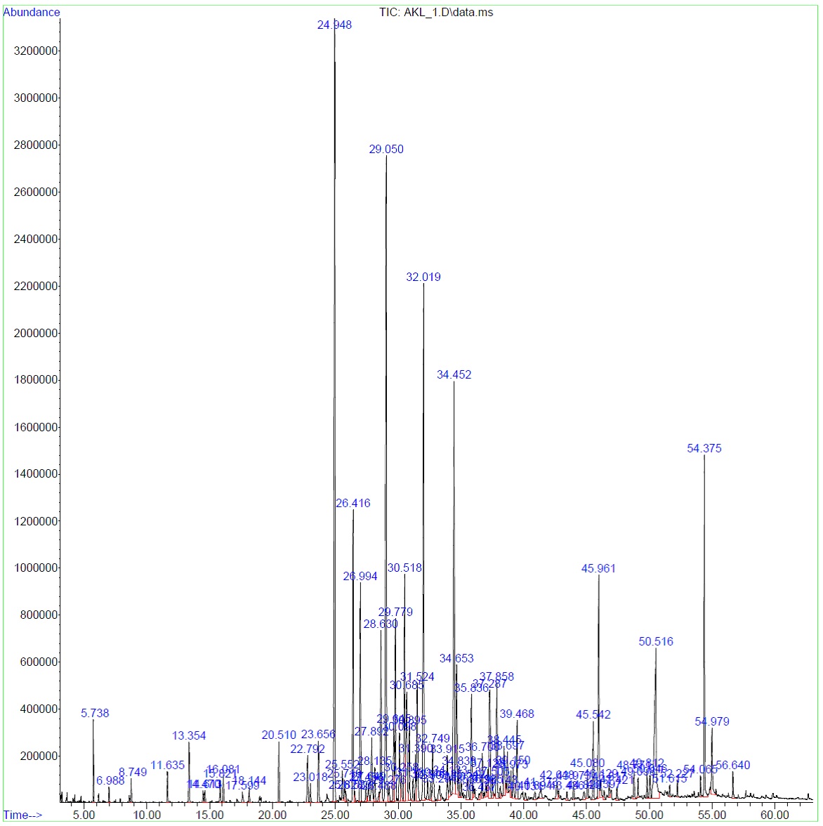 Fig. 6: GC-MS chromatogram of A. krisagathra stem in the post-monsoon period