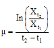 X and X–biomass dry weight at time points (t2 and t1) respectively (g/l).