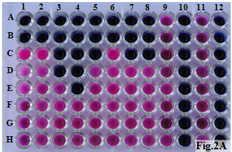 Fig. 2C: Modified resazurin assay results of ampicillin in decreased concentrations of 50 µl to 39 µg/ml