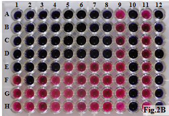 Fig. 2B: Modified resazurin assay results of gentamycin in decreased concentrations of 50 µl to 39 µg/ml