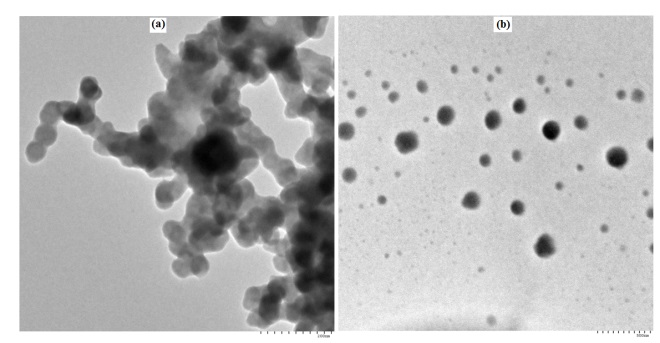 Fig. 4: TEM images of (a) nanostarch and (b) curcumin incorporated nanostarch