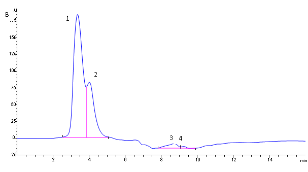 Fig. 2: RP-HPLC profiles of the standard flavonoid quercetin (A) and the flavonoid compounds in PPFRH (B) at 254 nm. Peaks: 2, quercetin