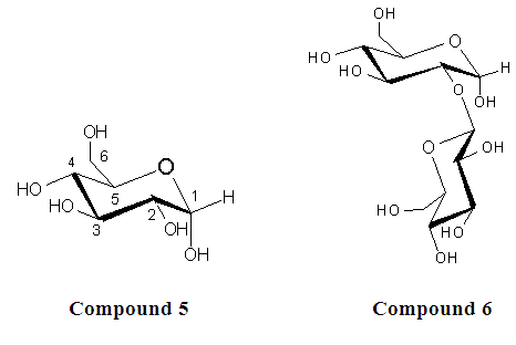Compound 5 was obtained as a white amorphous powder, its m.p. 160-162 ˚C, Rf values= 0.45 (CHCl3: MeOH: H2O; 65: 35: 5, TLC), 0.74 (n-BuOH: MeOH: H2O, 4:1:0.5, TLC). 1H-NMR δ: 6.18(1H, d, J= 3.8 Hz, H1), 4.85 (1H, d, H6), 4.75 (1 H, dd, H5), 4.63 (1H, d, H3), 4.75 (1 H, dd, H5), 4.36 (1 H, d, H4). 13C-NMR δ: 92.70 (C-1), 73.55(C-3), 72.82 (C-2), 72.44 (C-5), 71.01 (C-4), 61.67 (C-6).