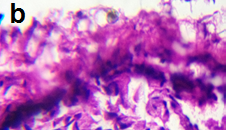 Fig. 2: Light photomicrograph of histopathological sections of sheep nasal mucosa treated with (a) Phosphate buffer saline (pH 6.8) PBS (-ve control), (b) Isopropyl alcohol (IPA)"+ve control" and (c) F14"Optimized formula."