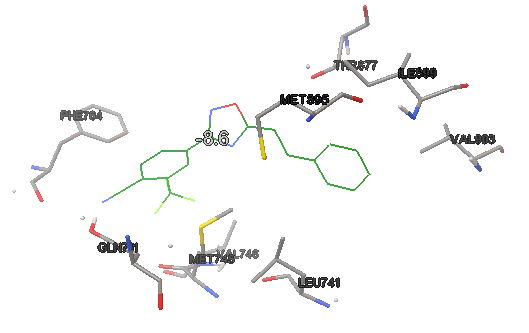Ring A: CF3 from hydrogen bonding with Gln711, Met745 and Thr677 residues whereas CN situated in a hydrophobic region with Phe764, Val746 amino acid residues (fig. 5).