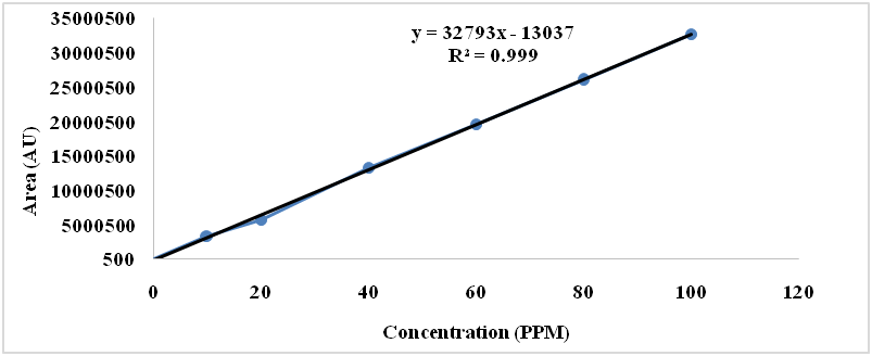Each sample solution was injected in triplicate and the mean peak areas for cilostazol and clopidogrel were calculated. The standard calibration curves of peak area verses concentration were plotted; the coefficient of correlation, slope and intercept values were recorded for clopidogrel and cilostazol respectively. According to USP, correlation coefficient (r2) for calibration curve must be>0.995; the correlation coefficients were found to be 0.999 for both drugs indicating good linearity of calibration curves. The linearity is as shown in fig. 3.