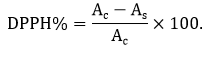 DPPH % is the percentage of DPPH radical scavenging activity, Ac is the absorbance of control, and As is the absorbance of the sample. The inhibition curve was plotted and IC50, the concentration necessary for 50 % reduction of DPPH radical was determined.