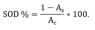 SOD % is the percentage of superoxide scavenging activity, As is the absorbance of sample, and Ac is the absorbance of control. IC50 values were calculated to determine the 50 % inhibition of superoxide radicals.