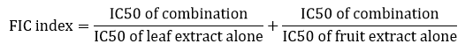 Table 1: Fractional inhibitory concentration index of different blends of leaf and fruit methanol extracts in lipase inhibition assay