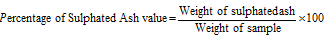 The residue remaining after incineration is the ash content of the drug, which simply represents inorganic salts naturally occurring in drug or adhering to it. In the present investigation, total ash, acid insoluble ash, water soluble ash and sulphated ash were determined for Ipomoea quamoclit plant powder. [12]