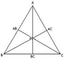 Fig. 1: Equilateral triangle representing simplex centroid design for 3 components (A,B,C).