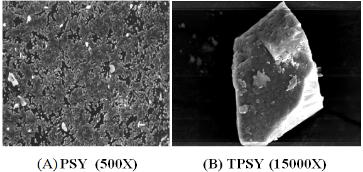 The surface morphology of PSY and TPSY were determined using FESEM (Instrument: FEI, model: Nova nano SEM 450). A field emission gun produces an electron beam with an extremely high current density, obtained by applying an intense electric field to a tungsten single crystal with a needle-shaped tip. This requires ultra-high vacuum (10-[10] Torr). The samples were sprinkled on a double adhesive tape stuck to an aluminium stub. The stubs were then coated with platinum to a thickness of about 10Å under an argon atmosphere using a gold sputter module in a high-vacuum. The stub containing the samples was placed in the FESEM chamber.