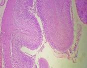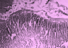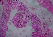 | Large intestine | Papillary projections with goblet cells. | Mucosal lining no infiltration of inflammatory cells. | Minimal infiltration of inflammatory cells and congestion. | Marked submucosal edema, mucosal tissue appears normal. |