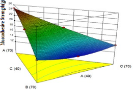 Fig. 9: Response surface graph for mucoadhesive strength where X1=A=TPSY, X2=B=PSYand X3=C=Carbopol