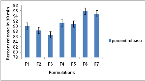 Fig. 12: In vitro drug release from formulations in 0.1N HCl (mean±SD n=3)