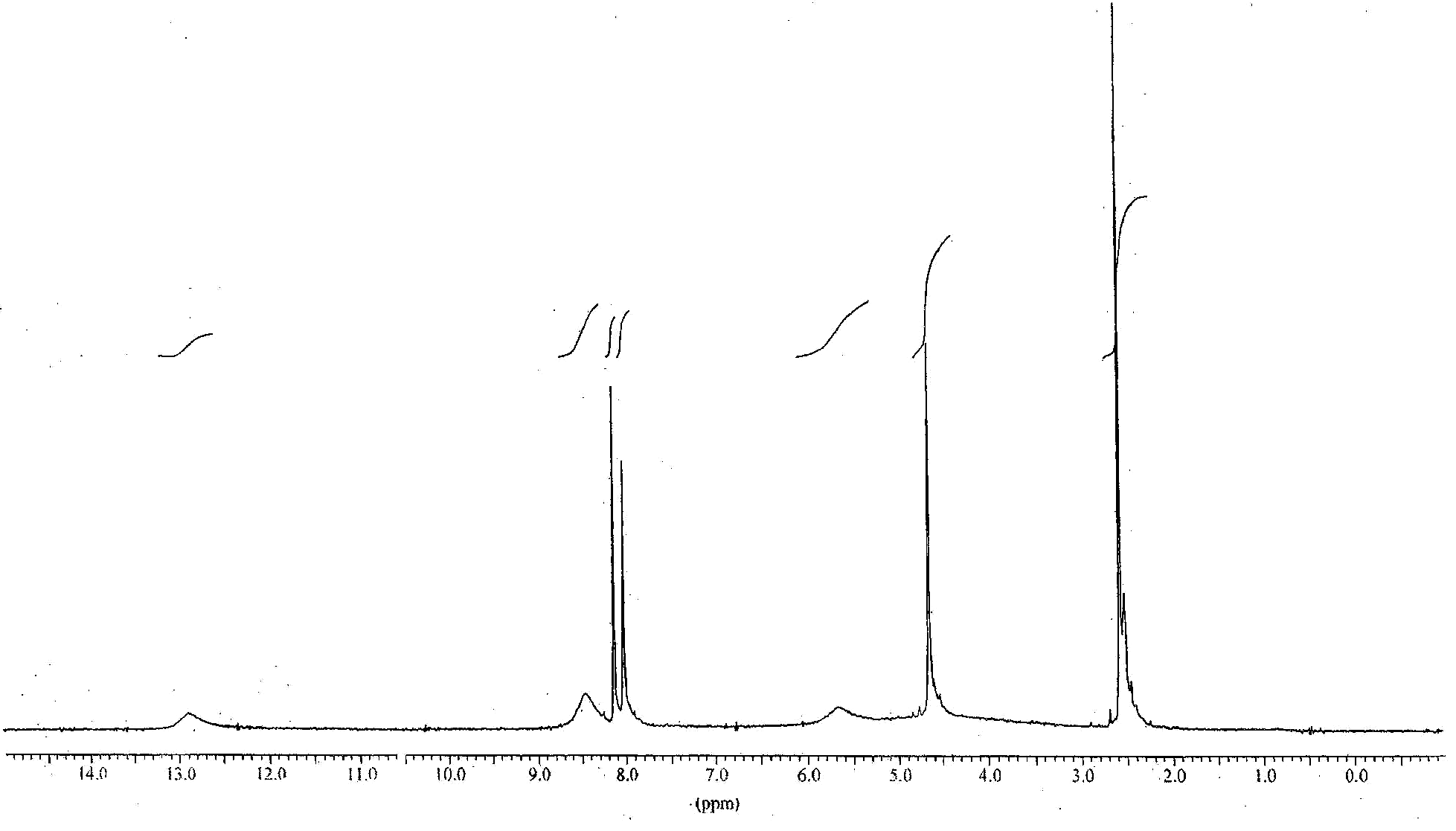 The 1H-NMR spectrum determined in DMSO-d6 showed peaks at 12.89 δ (s, Ar-OH), 8.5 δ (s, NH2), 8.4 δ (s, CH=N), 8.1 δ (s, Ar-CH), 5.6 δ (s, alcoholic-OH), 4.63(s, CH2-N=N), 2.6(s, CH2), 2.5(s, CH3) ppm. The δ (NH2) and δ (Ar-OH) peaks are confirmed by D2O studies, which disappeared on deuteration (Fig.4a & Fig.4b).