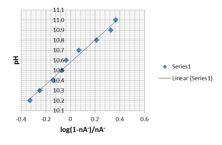 . Fig. 7b: Plot of Log (2-A)/ (A-1) Vs pH of PCHHMMH in aqueous medium
