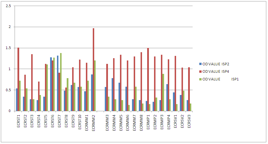 Fig. 1: Growth rate of isolated actinomycetes on different ISP medium at 200 rpm.