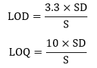 Limit of detection (LOD) and quantitation (LOQ) of the developed analytical method was estimated by using the standard deviation of the response and the slope method. The LOD and LOQ were calculated by using the following formula:
