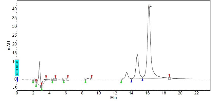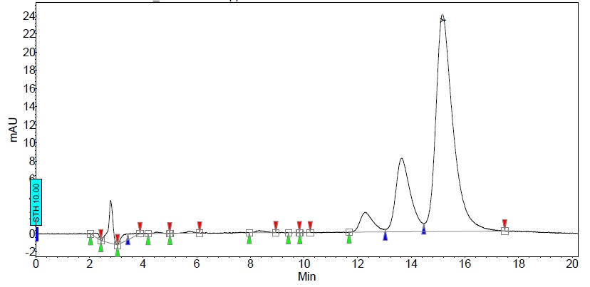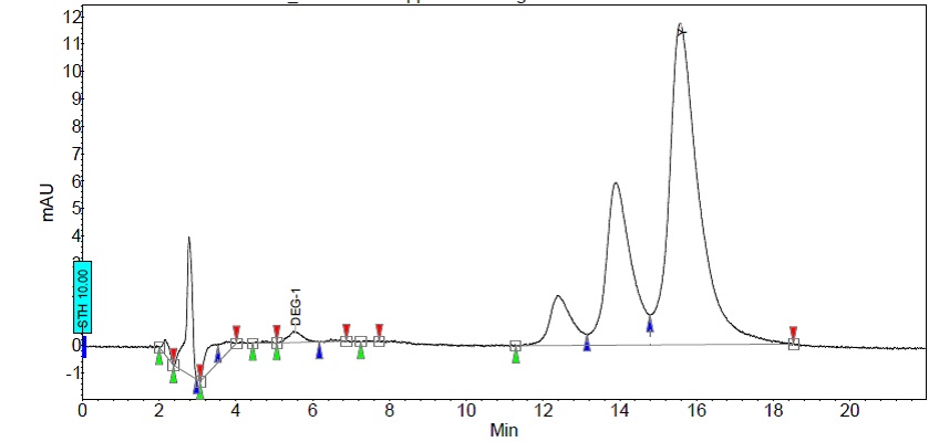 | Sample | Retention time (min) | Peak area (mAU*sec) | USP tailing factor | USP theoretical plates |