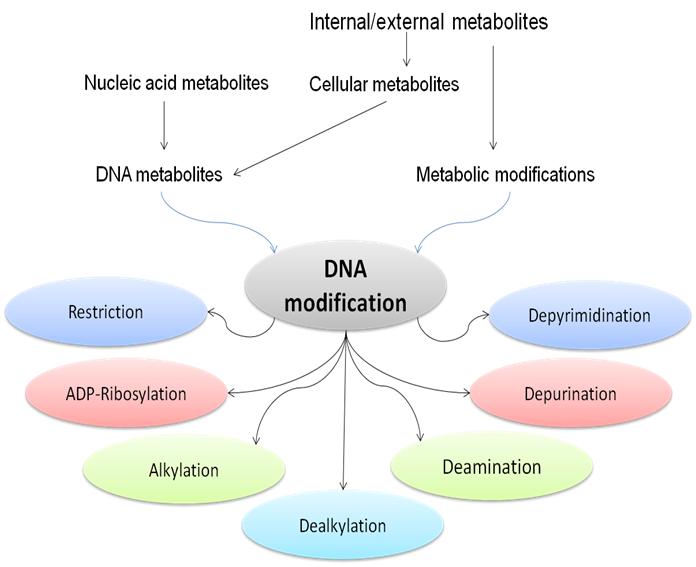 Fig. 2: An overview on DNA modification by metabolic process pathways. (Adaptation by: Author)
