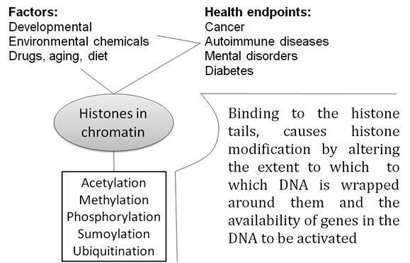 Histones are positive in charge. Thus, any substances (e. g.-internal and external chemicals/biochemicals) capable of being available on polysomic site that are negative or highly negative in charge may cause a disturbance in DNA packs. Thus, the inhibition of gene expression and silencing; ultimately epigenetic diseases. Moreover, the independent process-hypo-and hypermethylation of DNA, both are linked to altered gene expression and gene silencing [3].
