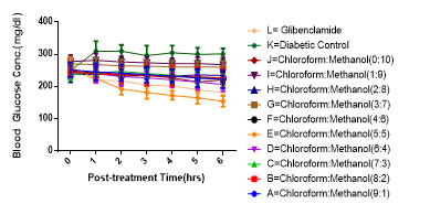 Table 4: Maximum Percentage decrease in FBG of Most Active fraction at different fractionation stages of C. Rutidosperma in STZ-induced Diabetic Mice