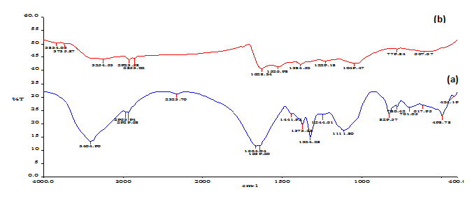 Fig. 3: FT-IR spectrum of bio-molecules in extract (a) and silver nanoparticles (b)