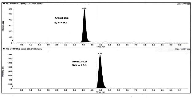The MS of LC-MS/MS system was an Applied Biosystems AB Sciex API 4000 model (Switzerland). The HPLC consisting an LC-20AD binary gradient pump, an SPD-10AVP UV detector, SIL-10HTC autosampler and a column oven CTO-10ASVP (Shimadzu Corporation, Kyoto, Japan) was used for method development and validation. Data acquisition and processing were conducted using the Analyst 1.5.1 software on a Dell computer (Digital equipment Co). Hypersil BDS C18 (100 mm x 4.0 mm, 3 µm) column was used for the analysis.