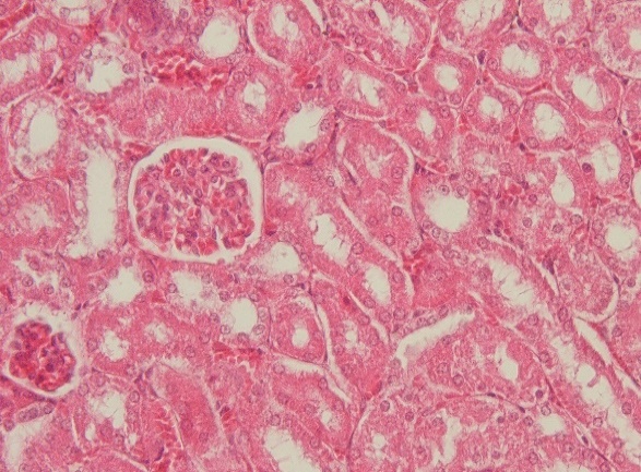 Fig. 1: Cross section of A. normal B. CSE 1100 mg/kg/d treated mouse liver and kidney (staining with HandE)