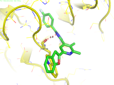 The in silico molecular docking study helps to identify whether the molecular docking of G6PDH with synthesized ligands 3(a-m) provides a correlating information with their in vitro anti-proliferative activity [13]. The molecular docking study revealed that compound 3i having the lowest binding energy (-8.60 Kcal/mol) in comparison to others, suggesting its potential to be as best potential inhibitor of G6PDH table 3.