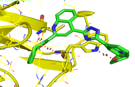 | 3m | -6.28 | 3 | Cys1 Trp74 |