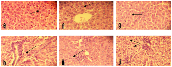 Liver and kidney sections of all groups were stained with haematoxyline & eosin as well as Masson's Trichome to detect changes in cells and different degree of fibrosis [42].