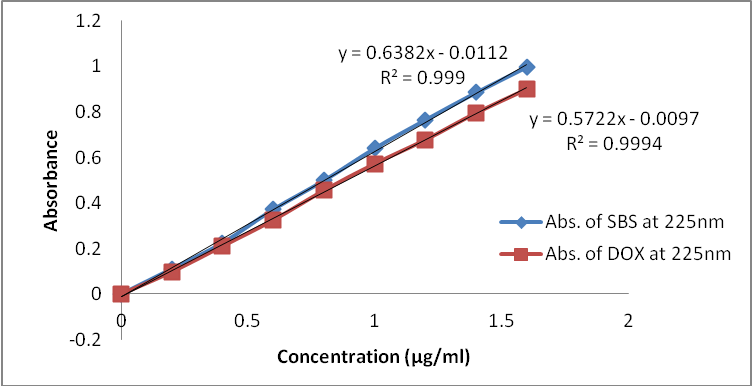 Fig. 5: Calibration curve of SBS and DOX at 225 nm