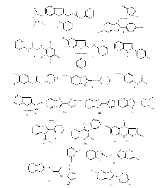 Fig. 2: Structure of analgesic and anti-inflammatory benzimidazoles 2-17